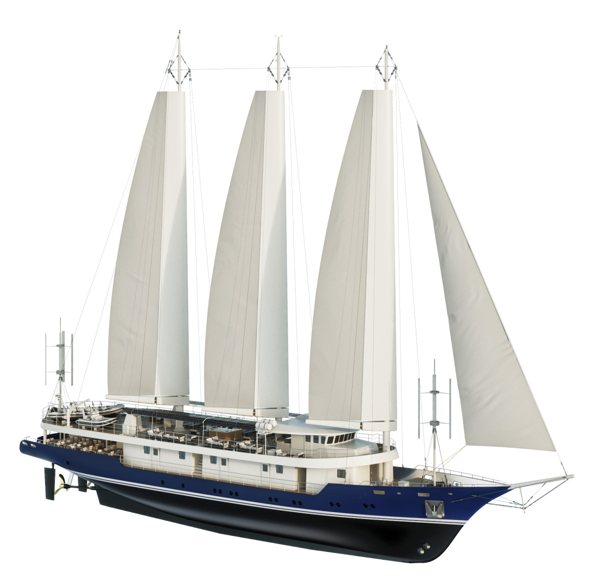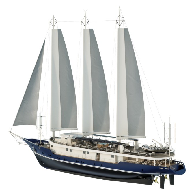 Najveći jedrenjak na svijetu pogonjen na struju, čije baterije se pune samom plovidbom, imat će klasu putničkih brodova neograničene plovidbe i moći će ploviti po svim morima svijeta.